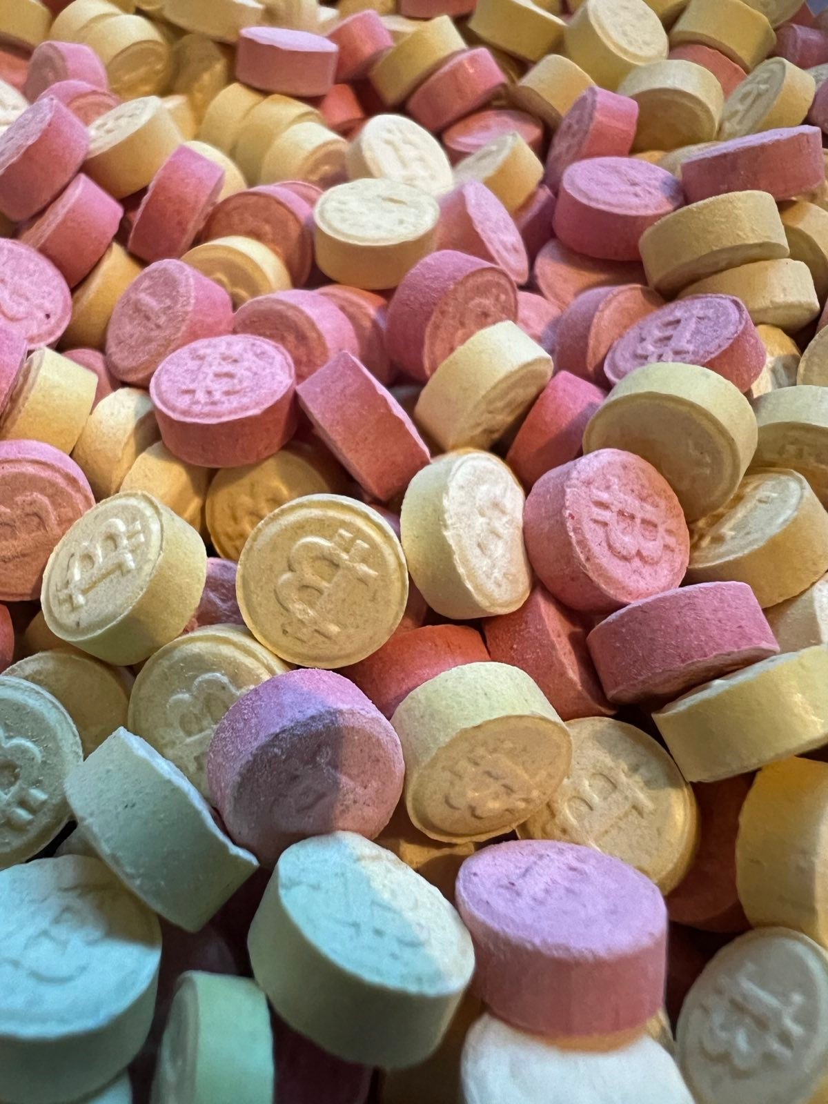 Pink and yellow Bitcoins 210mg is commonly referenced in unregulated product markets.